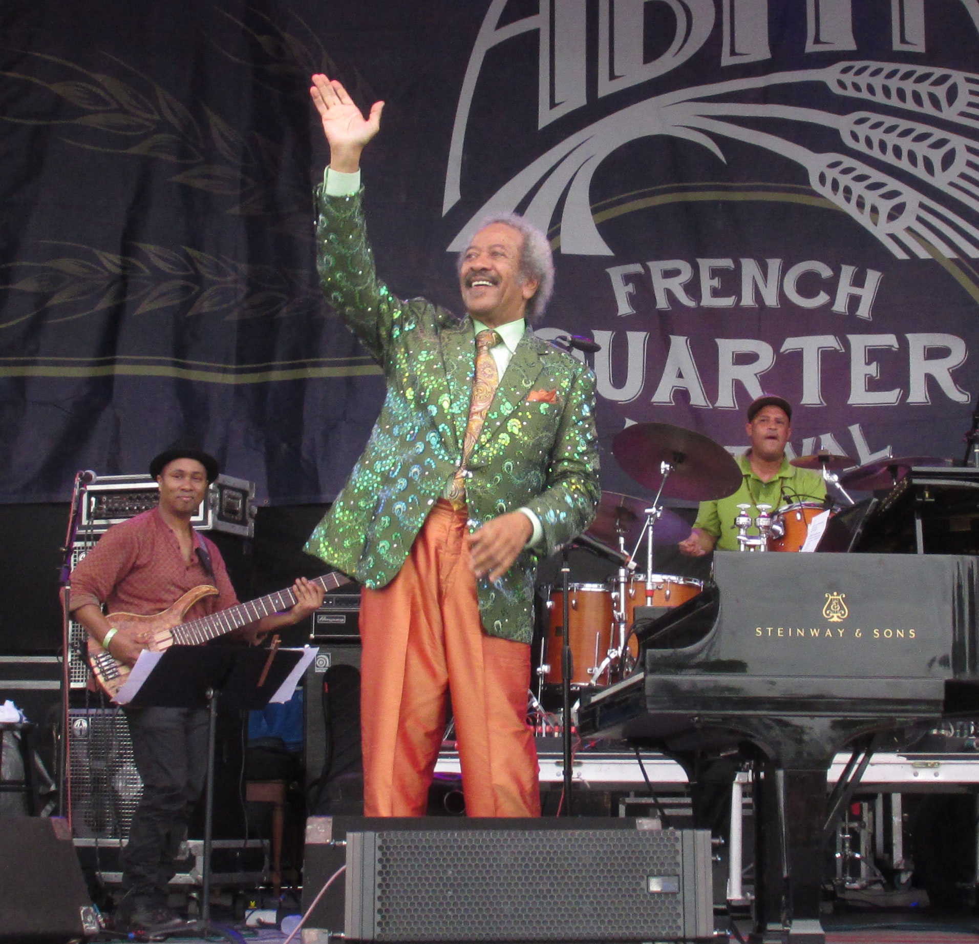 Allen Toussaint died last night (November 9, 2015) while on tour in Spain. There are many fine testimonials to his life and career. I can only say that when I met him this spring at the French Quarter Festival, he seemed so kind and gentle, hardly the megastar that he is (was). Here are some shots I took of him during his French Quarter Festival 2015 performance.