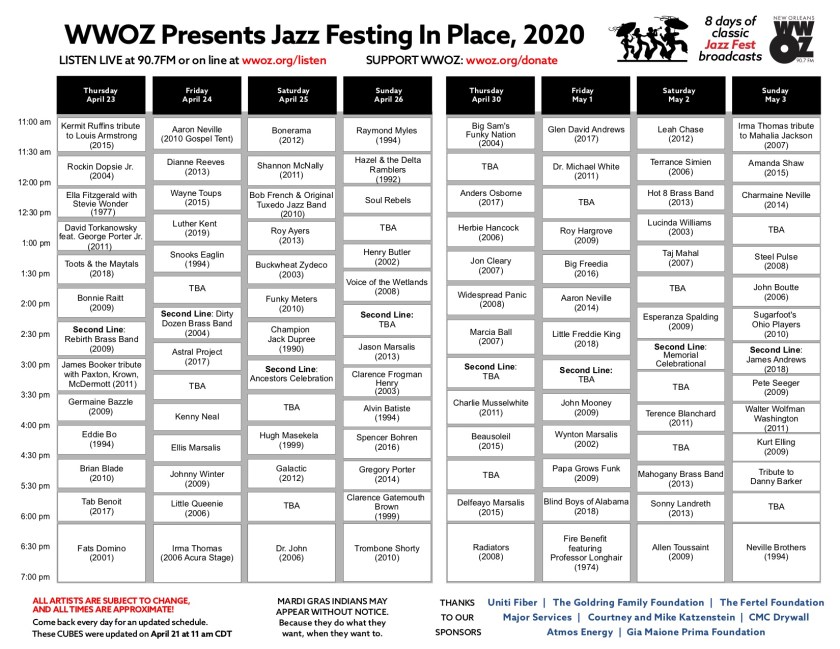 The first full set features three songs from New Orleans Jazz Fest Past — Flow Tribe performing in 2012, gospel rocker Raymond Myles in 1994 and a very special performance by The Radiator at the first Jazz Fest after Hurricane Katrina — another catastrophe where recovery was made more difficult by a less than competent federal emergency response.
