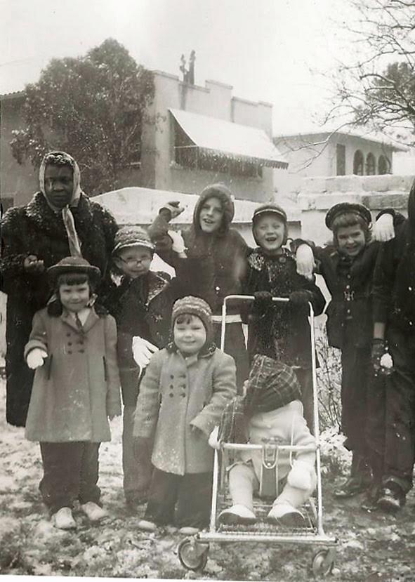 Early 1958. I don’t remember this pitiful New Orleans snow. I’m in the stroller.