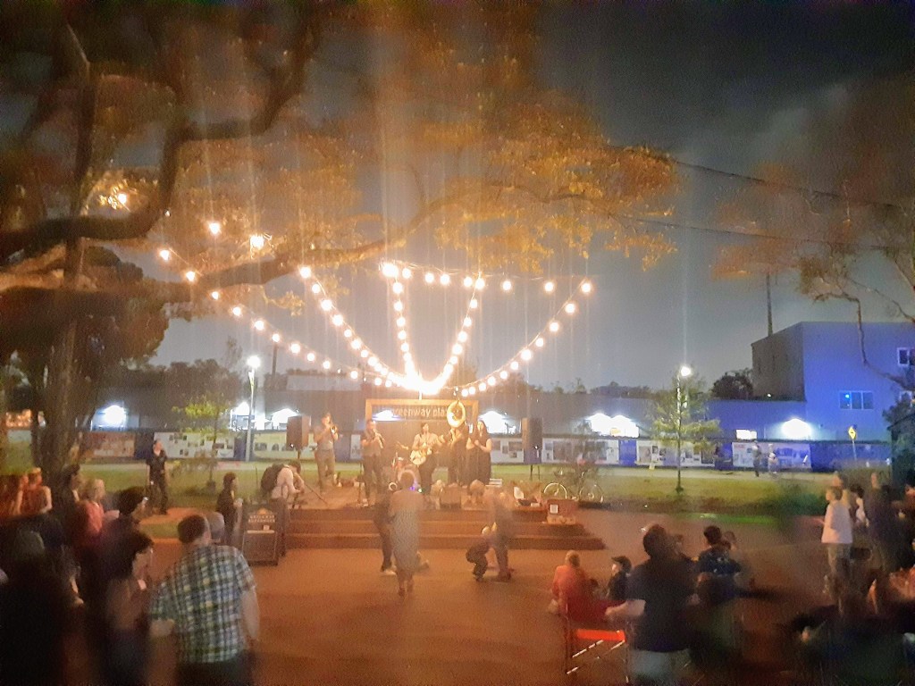 New Orleans is more than the French Quarter and Frenchmen Street and its imperative to get out into one of the hoods. The Greenway Supernova in Mid City on Friday night was a solid choice. A combination art event, fundraiser and concert in support of the Friends of Lafitte Greenway – a 2.6 mile greenbelt trail that runs from Louis Armstrong Park to Bayou St. John. Twelve luminary artworks dotted the park, anchored by a crafts fair, silent auction and two music stages.