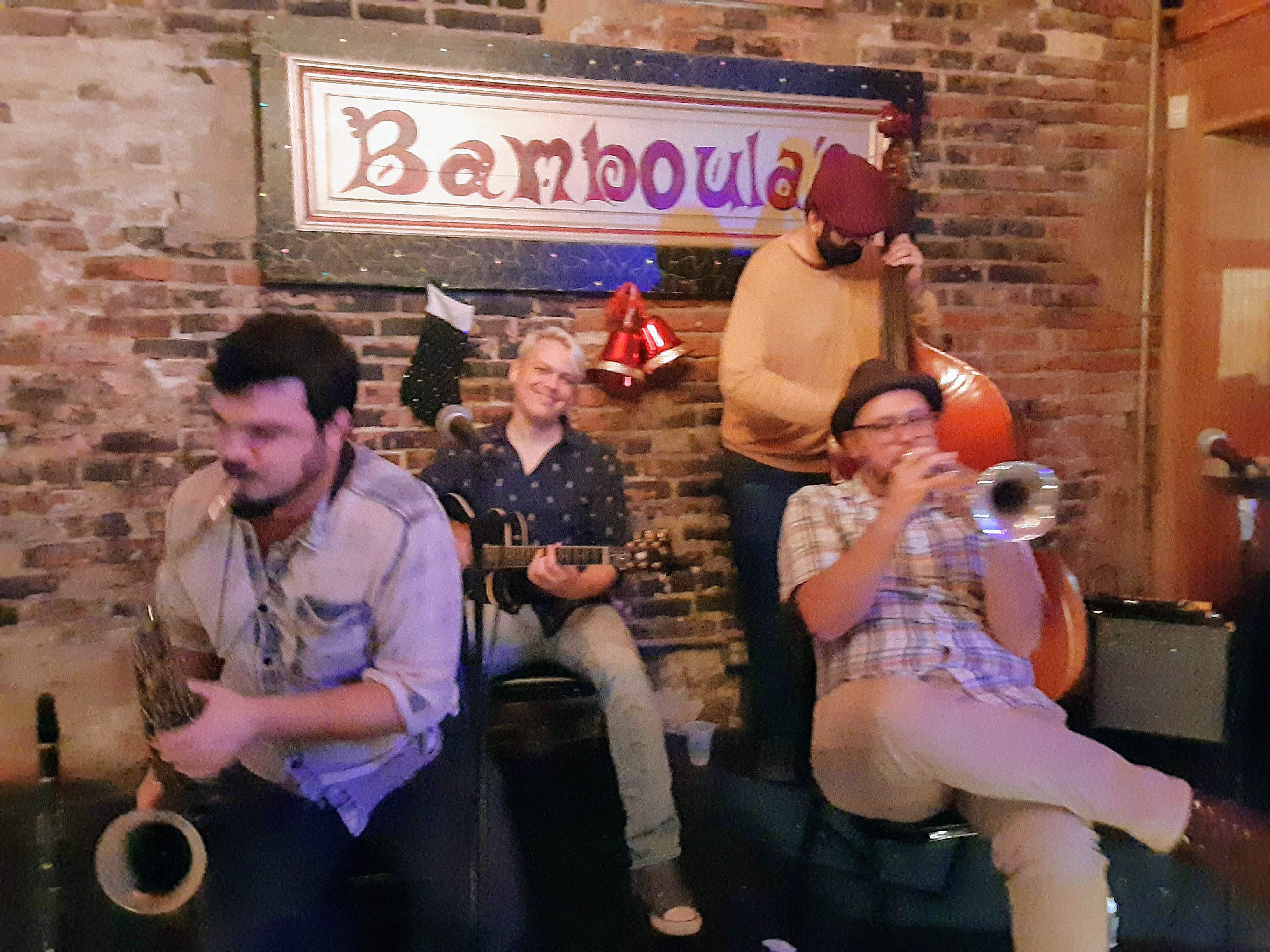 As we got into the weekend, the clubs became more active. We caught John Saavedra’s G & the Swinging Gypsies digging deep into Django Reinhardt’s songbook at Bamboula’s on Saturday. I have a recording of this group when it featured Gisell Anguizola on vocals and tap. But it appears Gisell lives and performs in San Diego now.