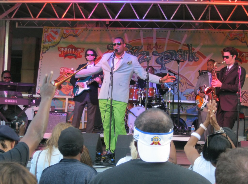 The first voice you’ll hear after I start the show is Kermit Ruffins rallying the troops (in this case Rebirth Brass Band, Trombone Shorty and Irvin Mayfield) for an extended second line pulled from the Los Hombres Calientes collection. And you’ll later get the feel of being there as music rolls by first with the Mardi Gras Indians Fi Yi Yi and the Mandingo Warriors rapping out their rhythm and then with The Original Pin Stripe Brass Band giving you that feel of watching a parade band go by – first the music a bit distant, then the volume increases as it comes to where you are standing, blasting away in your face and then it recedes as it moves on down the street. Pretty cool given the song, “Dancin’ at the Mardi Gras,” was recorded in a studio.