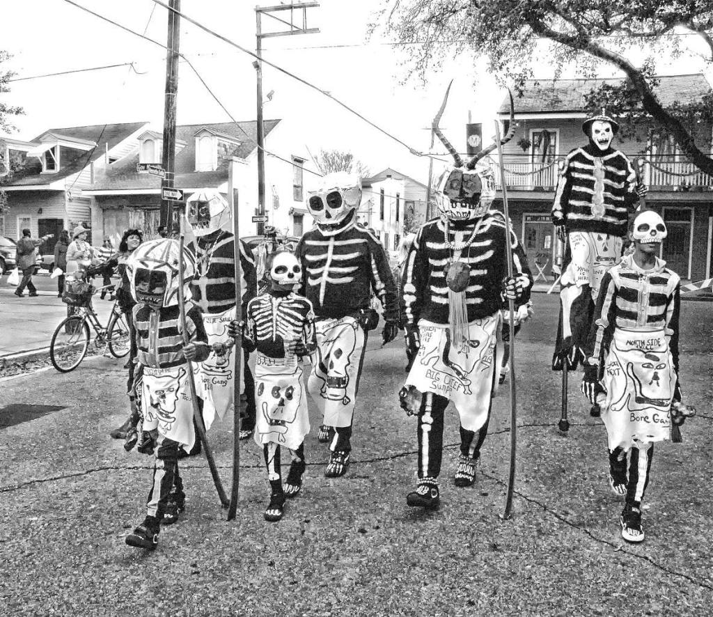 Other aspects of Mardi Gras is explored by music, including the first all-female parade krewe, Krewe of Muses, noted for their parade throws of decorated shoes. Lena Prima sings her song “Muses Shoes” and Liese Dettmer sings about her experience with the super Krewe parade Endymion. Later, Bruce “Sunpie” Barnes portrays the two century old tradition of skull gangs leading his “We Are the Northside Skull and Bone Gang.”