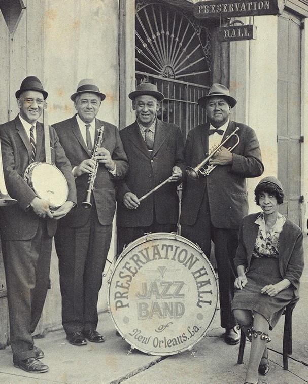 But first we take a trip to one of the more venerable of the New Orleans 130 plus music venues, Preservation Hall. Listener Sam Cagle shares his story of stumbling onto the place just off Bourbon Street just as it was getting established in the summer of 1961. Sam had just gotten out of training camp, preparing to a be an Air Force officer with six weeks to kill before he started his senior year in college. Taking a tip from a cadet who lived there, he decided to spend his last few free weeks in the August heat of New Orleans. His story is right after the first song and for mood setting, I throw in some Preservation Hall classics with George Lewis, Punch Miller, Sweet Emma, Percy Humphrey and others. By the way, I wrote up a longer piece on Preservation Hall a few years back.
